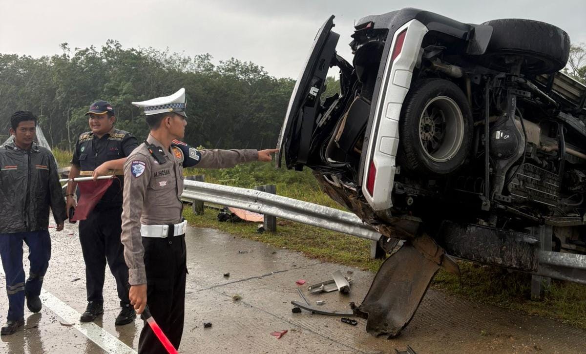 Nusanntarazonna.com,mpar – Kecelakaan tunggal terjadi di ruas Tol Pekanbaru–Bangkinang, tepatnya di KM 12.00 B, pada Minggu (5/10/2025) sekira pukul 13.40 WIB. Sebuah Toyota Fortuner dengan nomor polisi A 1134 EF yang melaju dari arah GT Bangkinang menuju GT Sungai Pinang, mengalami kecelakaan tunggal akibat jalan licin saat hujan deras mengguyur kawasan tersebut.