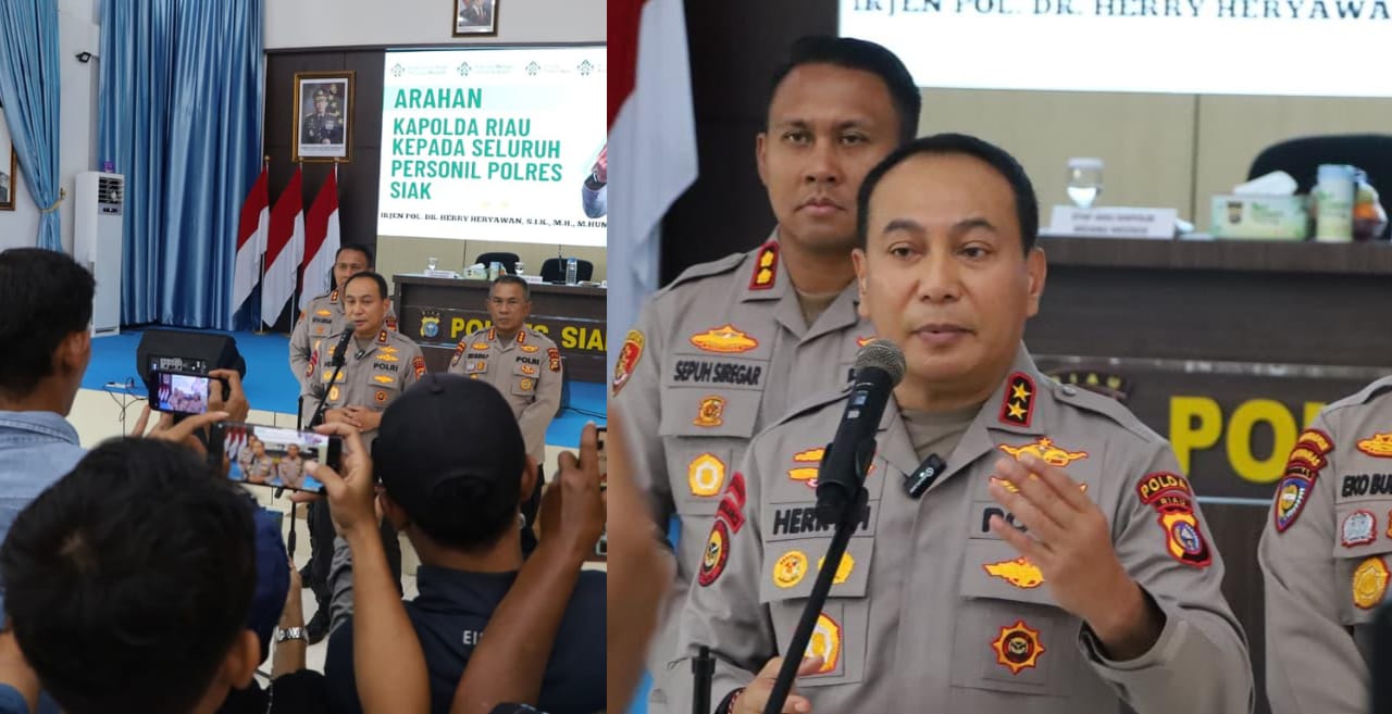 Nusantarazona.com,Siak-Kapolda Riau Irjen Herry Heryawan menginstruksikan seluruh jajaran Polda Riau dan Polres Siak untuk memperkuat kewaspadaan dalam menghadapi dinamika ketidakpastian global yang berdampak langsung terhadap situasi keamanan dan ketertiban masyarakat.