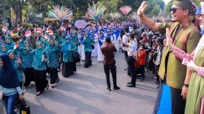 Puluhan ribu orang memadati Jalan Jendral Sudirman, Kota Pekanbaru pada momen Pawai Taaruf MTQ Tingkat Kota Pekanbaru tahun 2025, Minggu (2/11/2025). Mereka tumpah ruah untuk mengikuti rangkaian pawai ini.