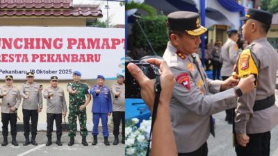 Nusantarazona.com,Pekanbaru — Polresta Pekanbaru menggelar Apel Launching PAMAPTA (Pasukan Mantap Patroli Tanggap) pada Kamis, 16 Oktober 2025 sekira pukul 09.00 WIB, bertempat di Mako Polresta Pekanbaru, Jalan Jenderal Ahmad Yani No. 11, Kecamatan Senapelan. Kegiatan ini dipimpin langsung oleh Kapolda Riau Irjen Pol. Dr. Herry Heryawan, S.I.K., M.H., M.Hum selaku Inspektur Upacara.