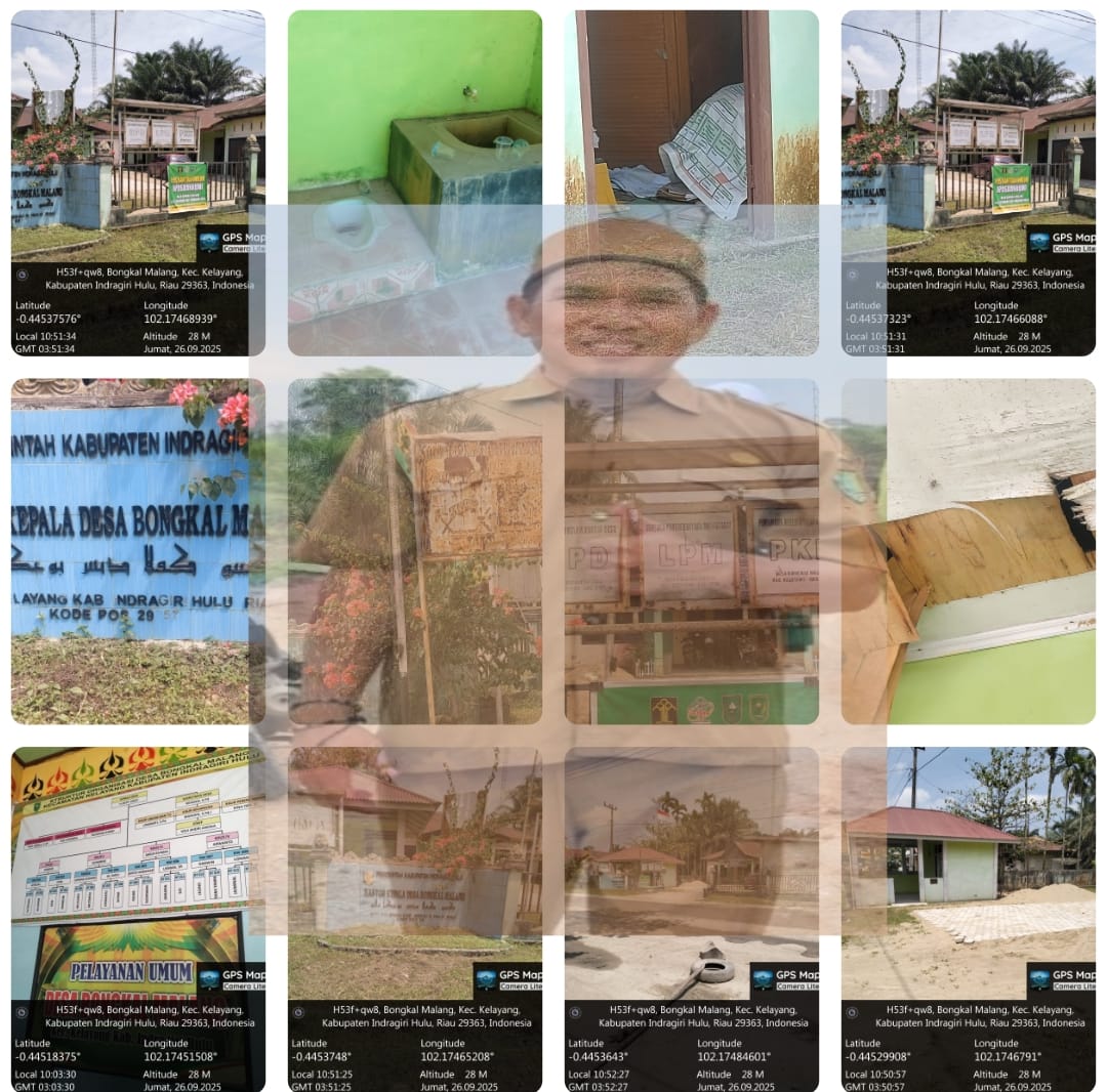 Khusus salah satu kantor desa Indragiri hulu tepatnya desa bongkal malang kecamatan Kelayang kabupaten Inhu yang sama sekali dugaan tidak pernah direhab ,tampak dari luar kantor desa bongkar malang kumuh berdebu, plafon bolong, plang merek kantor desa kumuh , seperti kantor ditinggal udah lama, kamis 25/9/2025.