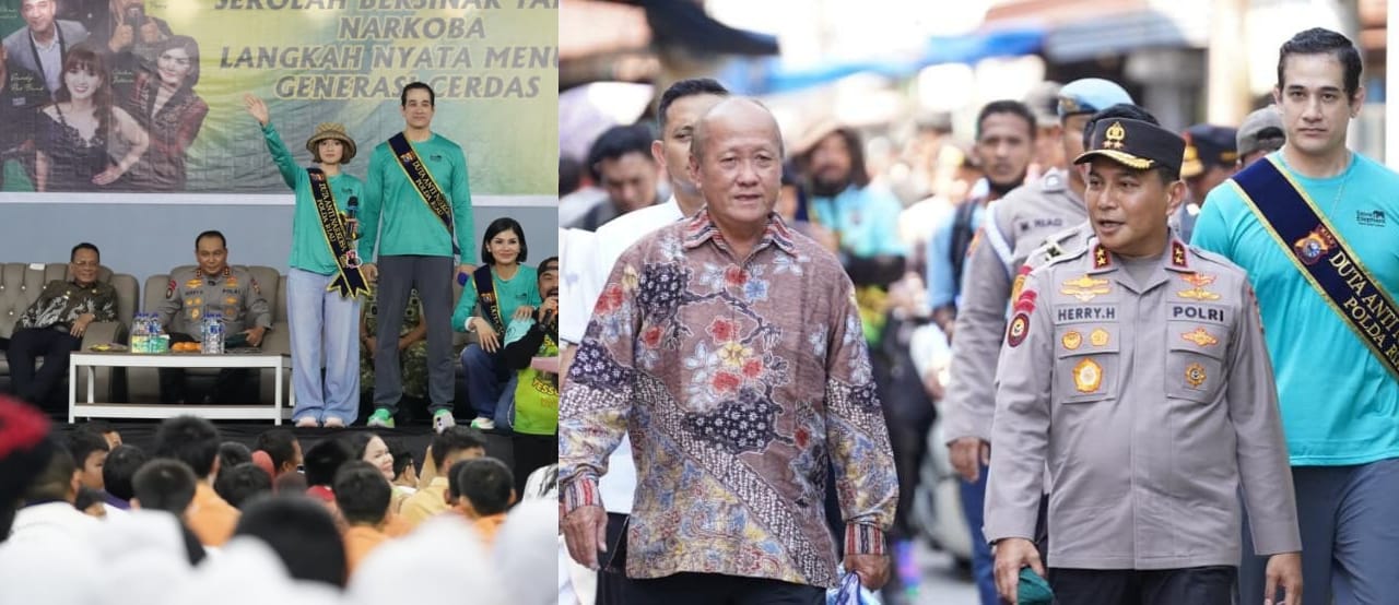 Kegiatan kemudian dilanjutkan dengan kunjungan ke Pasar Induk Panipahan, di mana Kapolda bersama para Duta Anti Narkoba memberikan imbauan langsung kepada masyarakat serta membagikan kaos kampanye anti narkoba.