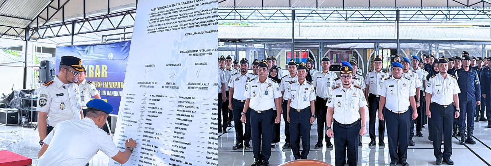 Nusantarazona.com*BANGKINANG, INFO_PAS*– Dalam rangka menciptakan lingkungan pemasyarakatan yang bersih dan berintegritas, Lembaga Pemasyarakatan (Lapas) Kelas IIA Bangkinang menggelar kegiatan deklarasi dan ikrar Zero Halinar (Handphone, Pungutan Liar, dan Narkoba), Senin (20/4/2026) pagi.