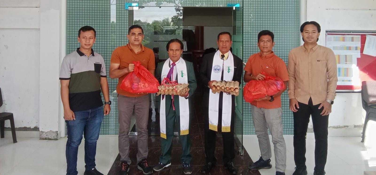Dalam kesempatan tersebut, Polres Kuantan Singingi juga menyalurkan bantuan sosial berupa dua paket sembako yang diserahkan langsung kepada Pendeta Gereja GPIB Efrata Teluk Kuantan, Sdr. Santino Manopo. Adapun isi paket sembako tersebut terdiri dari beras, minyak goreng, gula, kopi, mi instan, dan kebutuhan pokok lainnya.