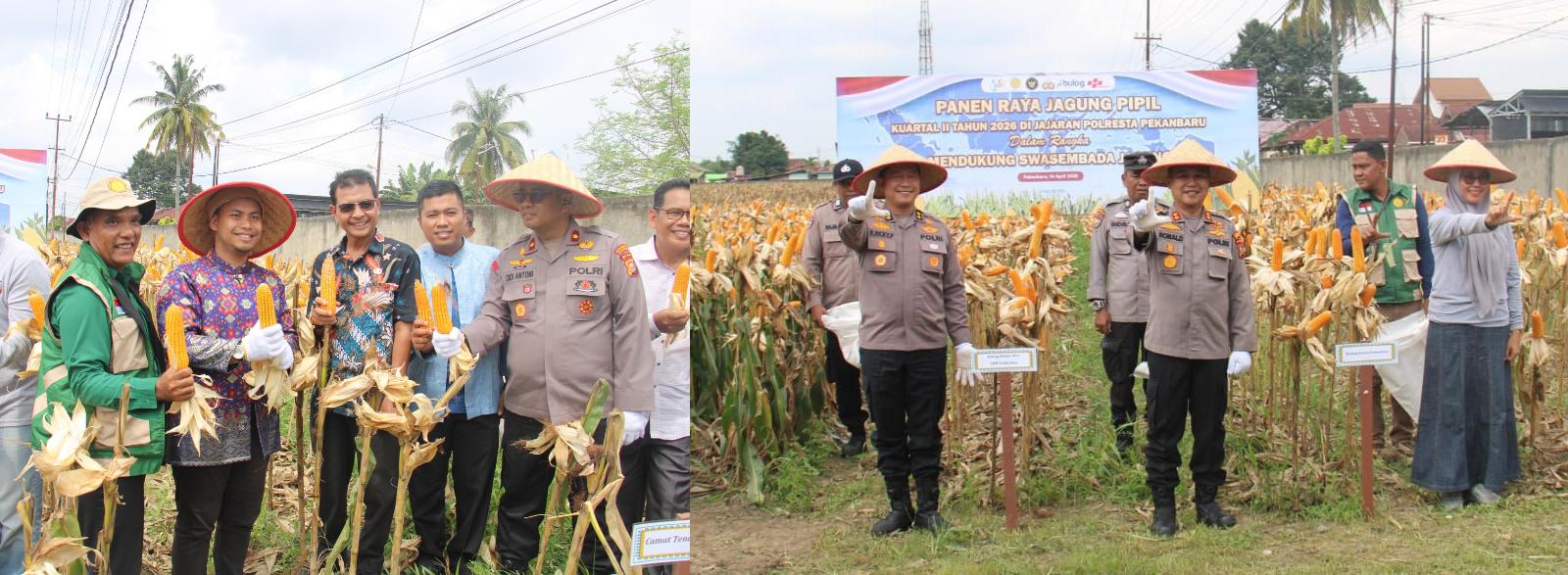 Nusantarazona.com,Pekanbaru – Dalam rangka mendukung program swasembada pangan nasional, khususnya swasembada jagung, jajaran Polresta Pekanbaru melalui Polsek Kulim melaksanakan kegiatan Panen Raya Jagung Pipil Kuartal II Tahun 2026, Kamis (16/4/2026), di lahan pertanian Jalan Jawa RT 003 RW 001, Kelurahan Sialang Sakti, Kecamatan Tenayan Raya, Kota Pekanbaru.